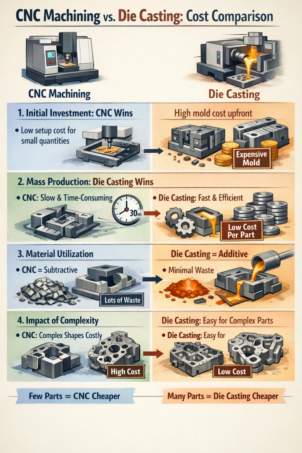 Tungkol sa kung ang die casting o CNC machining ay mas mura, ang sagot ay talagang depende sa kung gaano karaming mga bahagi ang plano mong gawin.