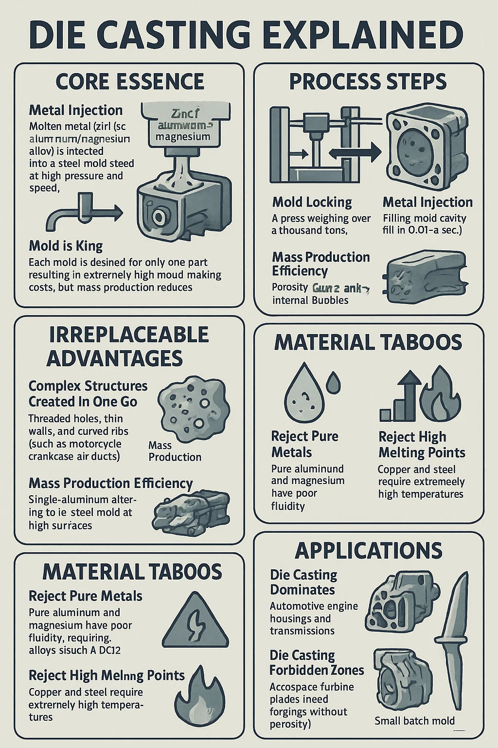 Ang pagtanggi ng mga dalisay na metal: Ang purong aluminyo at magnesiyo ay may mahinang likido, na nangangailangan ng mga haluang metal (tulad ng ADC12 aluminyo na may 10% silikon).